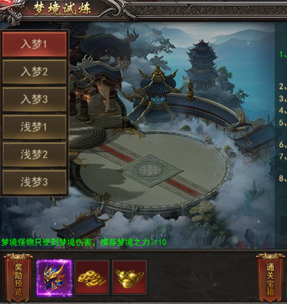 a. 虚妄梦境大陆的怪物,只会受到梦境伤害,可以在梦境商人处购买碎片合成梦魇装备,提升梦境之力等属性;
